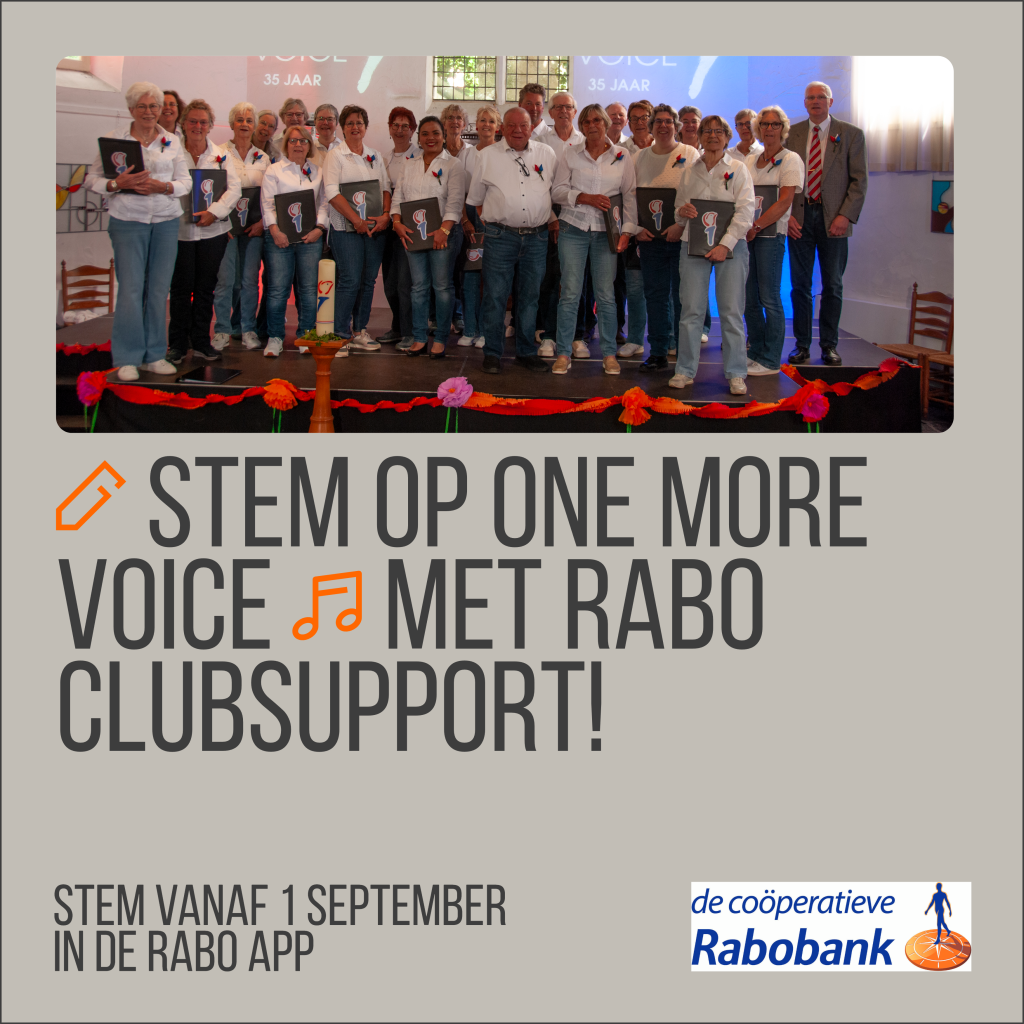 Wij doen ook dit jaar weer mee aan de Rabobank Clubactie. Hoe meer stemmen we krijgen, des te beter. Stem vanaf 1 september in de Rabobank app op ons.